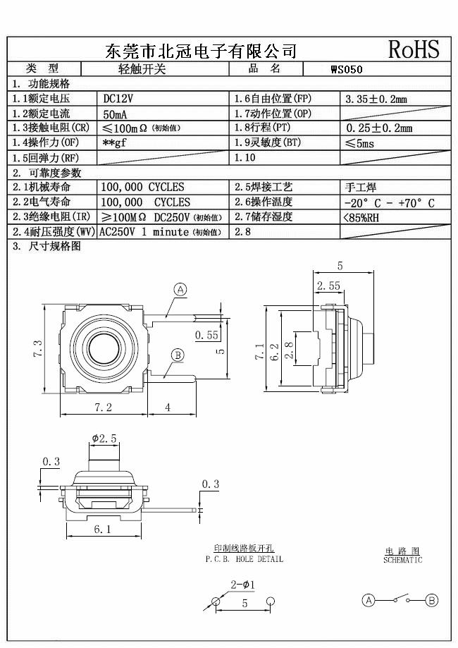 產(chǎn)品名稱:WS050輕觸開關(guān)