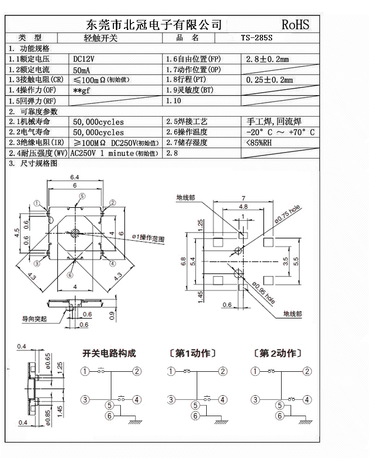 產(chǎn)品名稱(chēng):TS-285S輕觸開(kāi)關(guān)