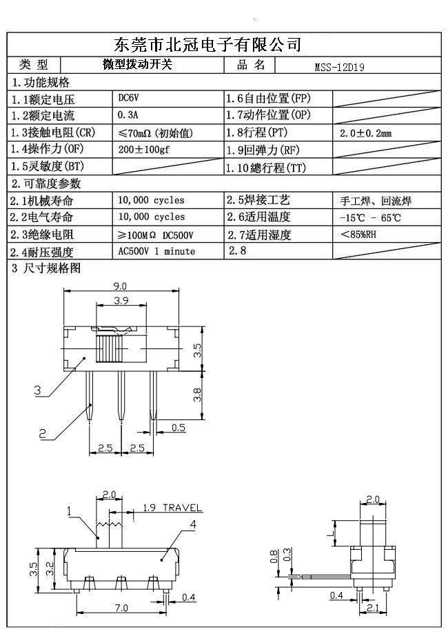 7. Operating Life : 10,000Cycles