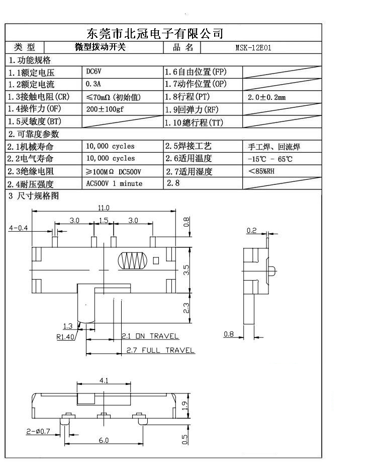 產(chǎn)品名稱:MSK-12E01撥動開關(guān)