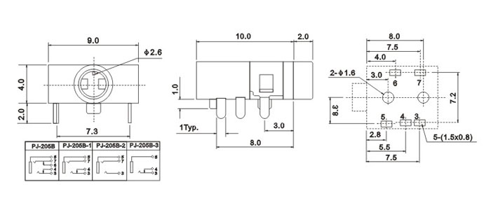 產(chǎn)品名稱:PJ-205B 品名:2.5耳機插座 |