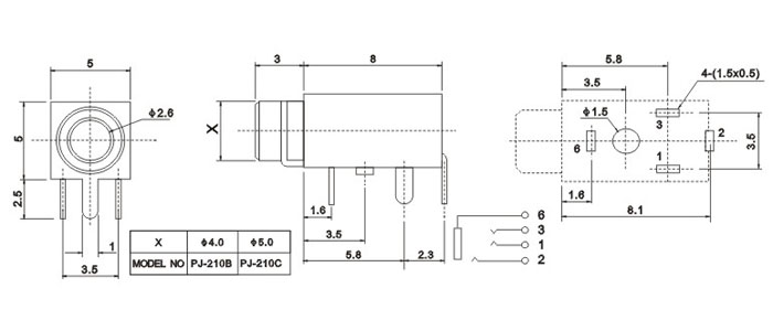 產(chǎn)品名稱:PJ-210B 品名:2.5耳機插座 |
