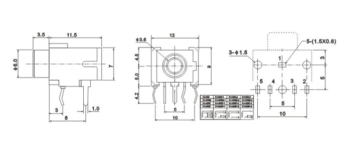 產(chǎn)品名稱:PJ-306 品名:3.5耳機(jī)插座 |